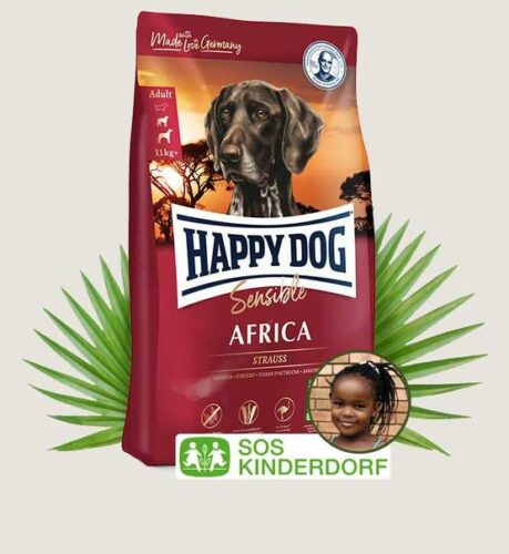 Happy Dog Supreme Sensible Africa is een exquise droogvoer, dat speciaal op de behoefte van voedselgevoelige of kieskeurige honden van gemiddelde grote met een normale energiebehoefte aangepast is. Aromatische struisvogel dient als enige bron van dierlijke eiwitten. Omdat struisvogelvlees een zeldzame eiwitbron is, is het bijzonder geschikt voor honden met voedselintellerantie. Waardevolle aardappelen dienen als goed verteerbare bron van koolhydraten, die in tegenstelling tot veel graansoorten volledig vrij van gluten zijn. Gluten worden beschouwt als trigger voor onaangename allergieën en intolleranties. Tevens bevat de maaltijd essentiële omega-3 en -6 vetzuren, welke een glanzende vacht alsook een gezonde huid positief kunnen beïnvloeden. De brokken worden in vorm en grootte optimaal aan het gebit van middelgrote en grote honden aangepast. Toegevoegde waardevolle vitaminen en mineraalstoffen maken dit hoogwaardige voer compleet.