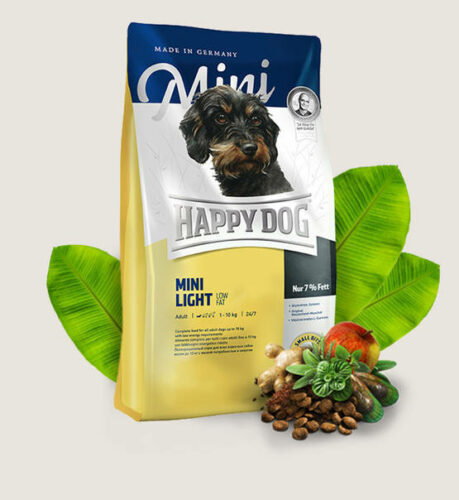 Honden van kleine rassen met een neiging tot overgewicht hebben behoefte aan een zeer lichte, vullende en toch lekkere voeding met een gering vetgehalte! Happy Dog biedt met Mini Light de perfecte receptuur: de waardevolle proteïnebronnen en het unieke Happy Dog Natural Life Concept® met natuurlijke ingrediënten vormen de basis van dit zeer goed verteerbare super-premium voer. Het bevat slechts 7% vet bij 24% proteïne. Doordat het verrijkt is met de Originele Nieuw-Zeelandse mossel en vitaliserende L-carnitine is Mini Light geschikt voor volgroeide honden van kleine rassen. Het geringe energiegehalte en een dagelijkse beweging van 1-3 uur die op de lichamelijke mogelijkheden is aangepast stabiliseren bij een individueel aangepaste voeding op lange termijn het gewicht en voorkomen de problemen die daaruit ontstaan.